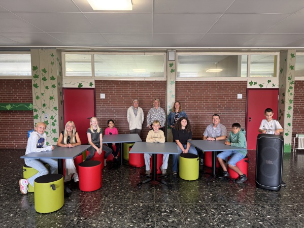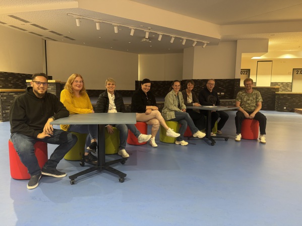Einige Mitglieder des Schulelternrates nutzten nach der konstituierenden Sitzung am 08.09.25 die Gelegenheit und testeten die neuen Sitzmöbel im Forum.